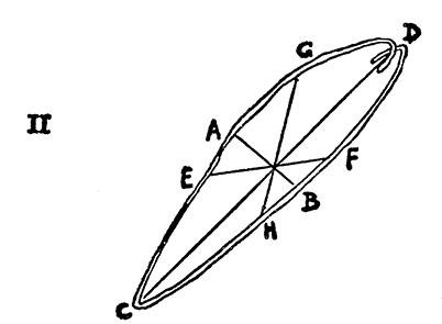 但是,轻拉绳子两边,圆圈就变成了椭圆形,完美的平衡被破坏,各条直径乱七八糟。AB和EF等几条线段大大缩短了,其它线,尤其是CD,却增长了。