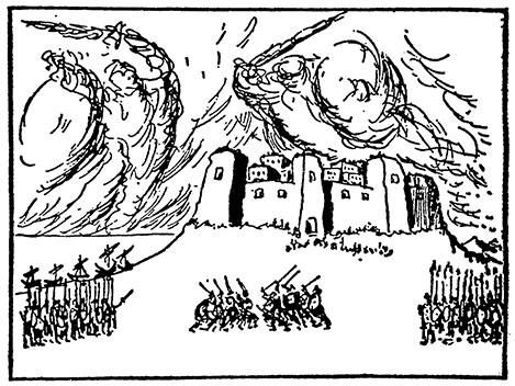 受过良好教育的孩子当然都会知道,宙斯是非常强大的统治者,蓄着长长的胡子,偶尔狂暴地耍起闪电霹雳时,世界就象到了末日一样。尽管孩子们在摇篮里就听别人讲过神灵的故事,可是等他们稍一长大,能够自己读古老的传说了,便开始琢磨起这些可怕神灵的弱点。他们这时看到的神灵是在愉快的家庭晚会的灯光下出现的化装人物——他们彼此无休无止地恶作剧,参加凡人朋友们的政治争论,由于各支持一方而相互激烈争吵,因此,希腊尘世每发生一次争论,就必然会引起天国诸神之间的一场轩然大波。
